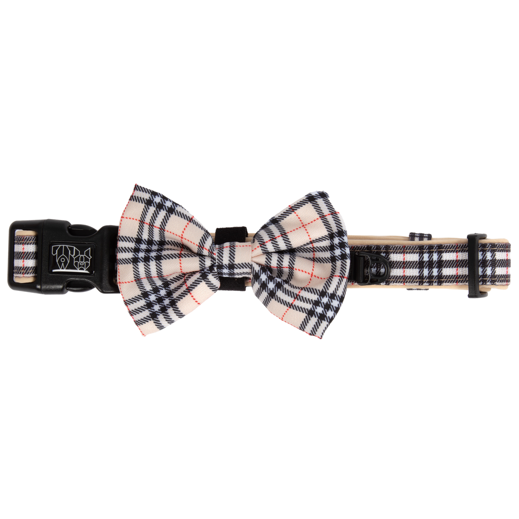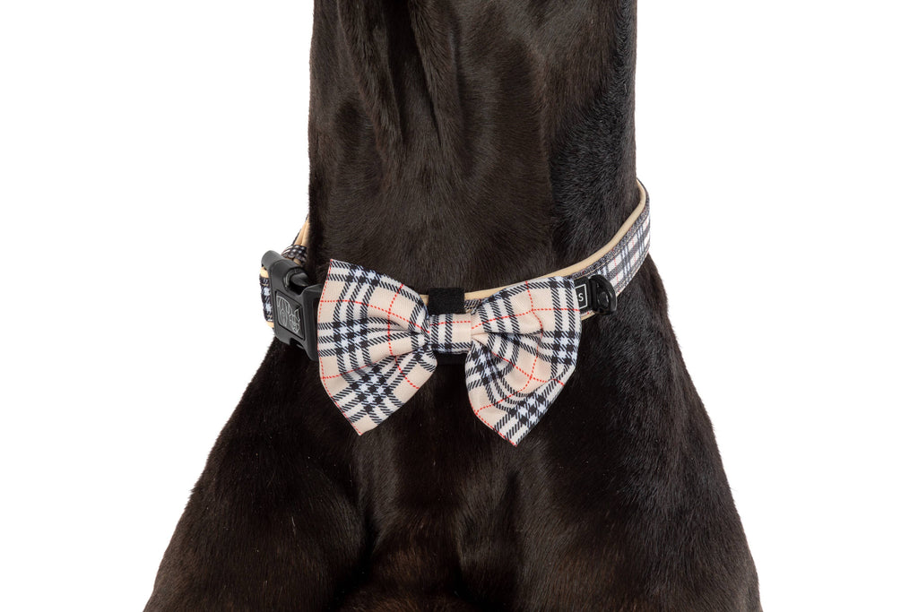 Elevate your pet’s style with the Plaid Nova collar and bow tie—where durability meets chic design.