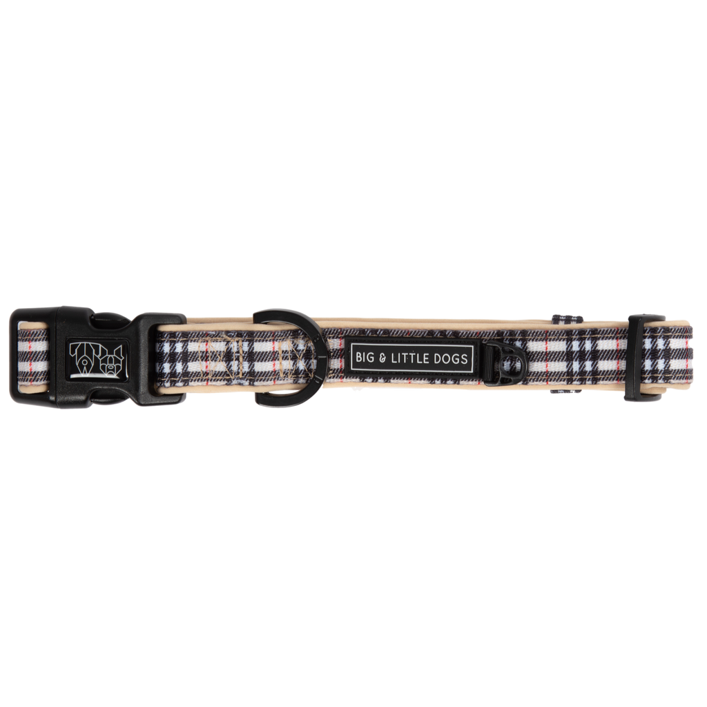Introducing the stylish and functional Plaid Nova collar and bow tie set from Big & Little Dogs. Crafted with a custom plaid print, this collar is designed for both style and comfort, making it the perfect accessory for your dog. The collar is lined with matching neoprene for added comfort, ensuring your pet enjoys every moment of wear. The set includes a detachable bow tie, perfect for special occasions—though, like any fashion accessory, it may wear quicker with daily use.