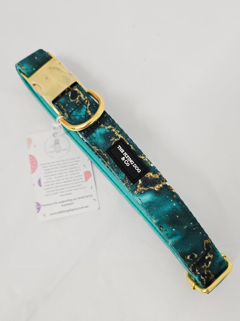 Step into style with Emerald City — where luxe meets everyday adventure. Featuring a striking emerald green and gold marble design, this collection brings a touch of sophistication to every walk. Bold, elegant, and effortlessly chic, Emerald City transforms your pup’s accessories into statement pieces that shine as brightly as they do.