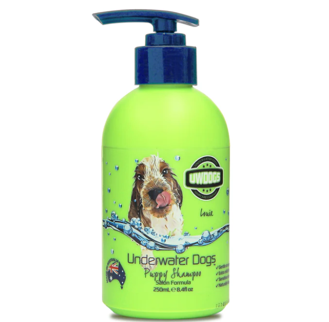 UNDERWATER DOGS present a professional salon formulated SHAMPOO made especially for dogs. Soap-free, paraben-free, cruelty-free, naturally moisturising and containing unique blends of pH balanced ingredients adding softness and shine to every coat. Perfect for those with sensitive, dry, itchy or mature aged skin.